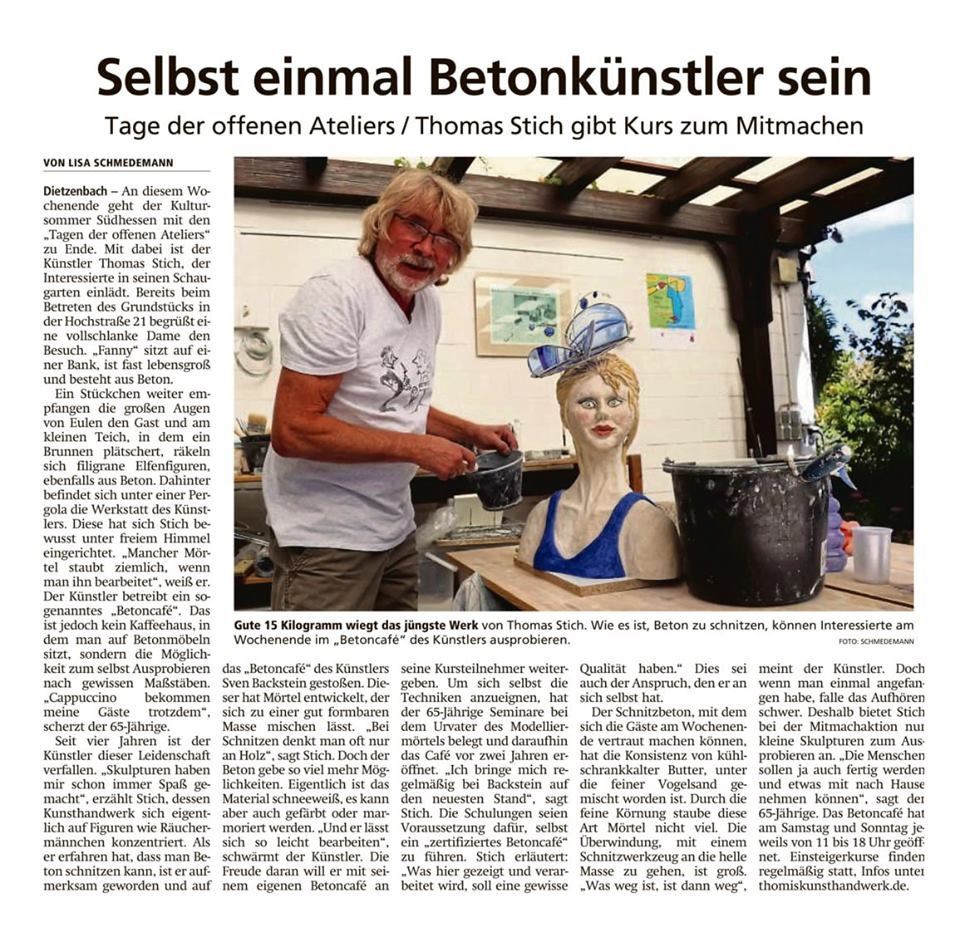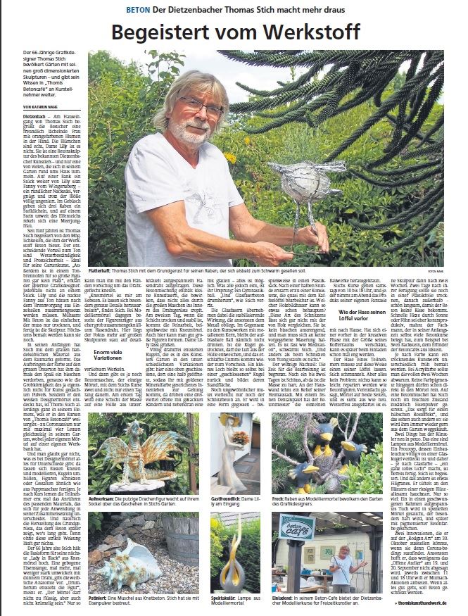 Besucher eine Ausstellung von Betonskulpturen, handgefertigt von Thomas Stich in seiner Werkstatt Thomi s BetonCafè. Bei einer kleinen Erfrischung freuen sich die Gartenbesitzer auf interessante Gespräche mit ihren Besuchern über